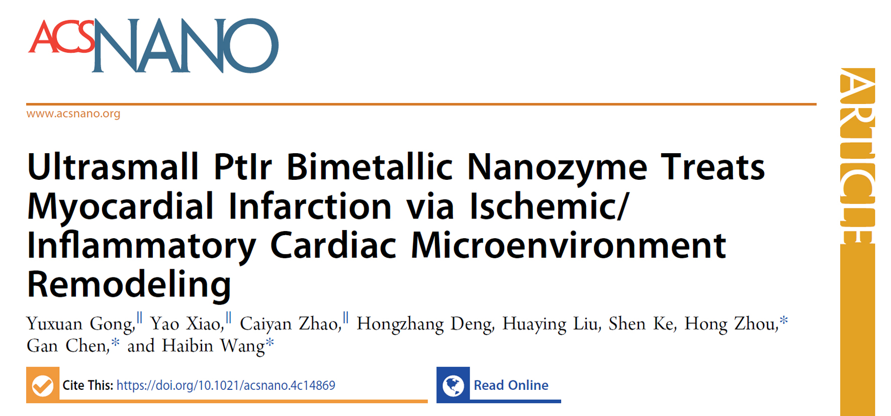 该研究成果2025年4月2日以“Ultrasmall PtIr bimetallic nanozyme treats myocardial infarction viaischemic/inflammatory cardiac microenvironment remodeling”为题发表在《ACS NANO》上(DOI: //doi.org/10.1021/acsnano.4c14869)。a片网站 王海滨副教授课题组与军事医学研究院周虹/陈赣教授课题组和西安电子科技大学邓宏章教授课题组合作,a片网站 硕士毕业生巩禹璇(现为军事医学研究院博士研究生)为共同第一作者,王海滨副教授是该论文的主通讯作者。